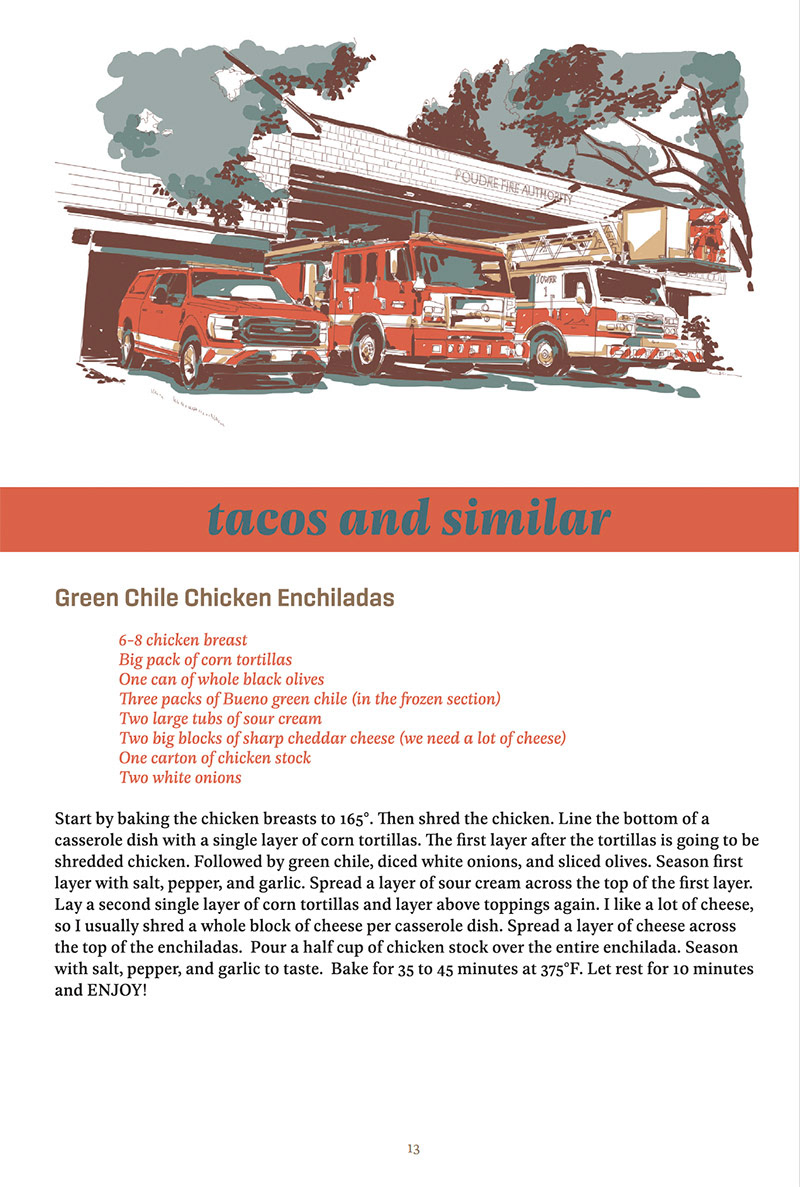 The 1945 assembled a new volume of firehouse cookbook and I supplied the illustration, layout, and press ready files. The union uses all proceeds from the sales of the cookbook to do community works.